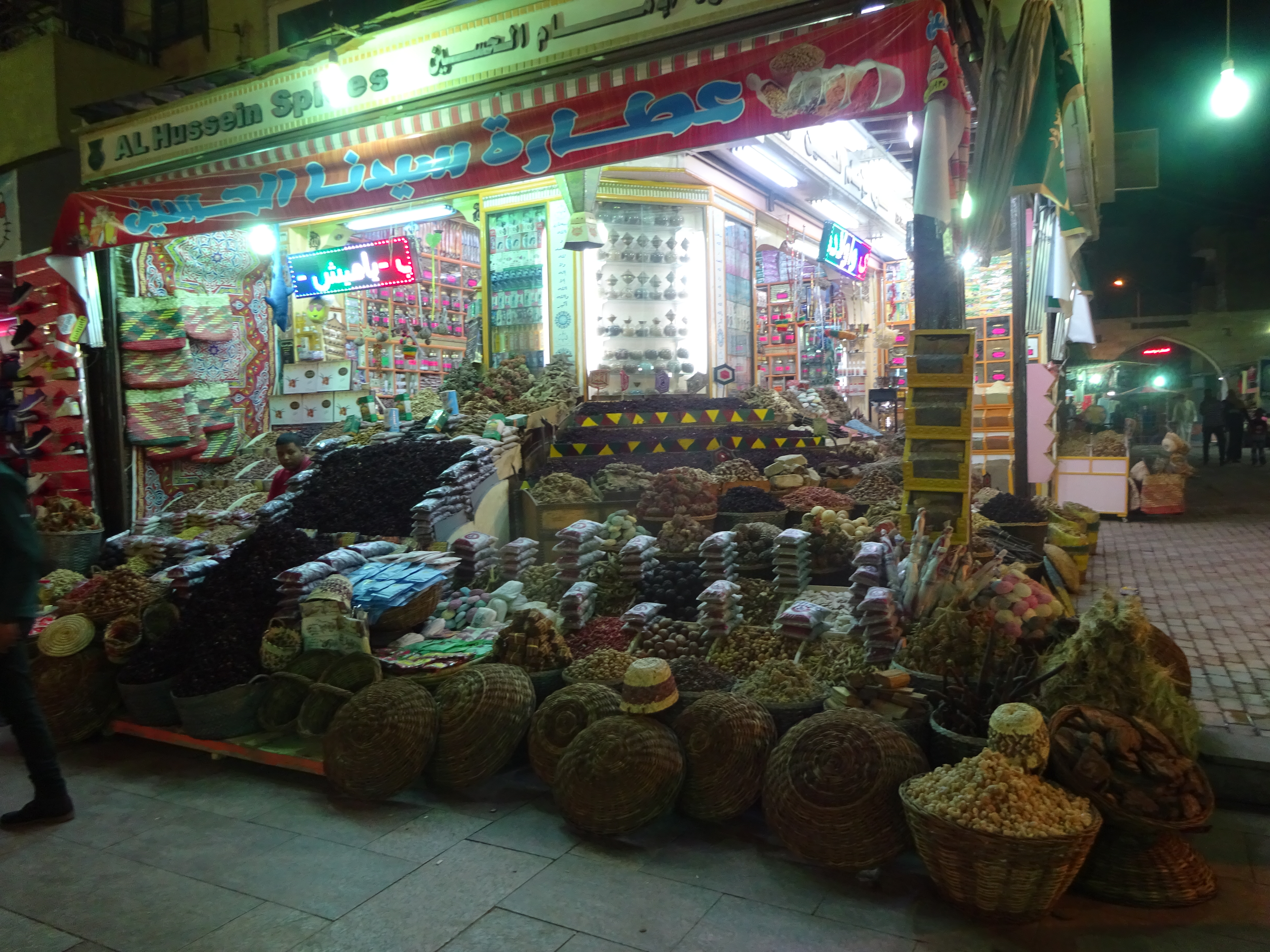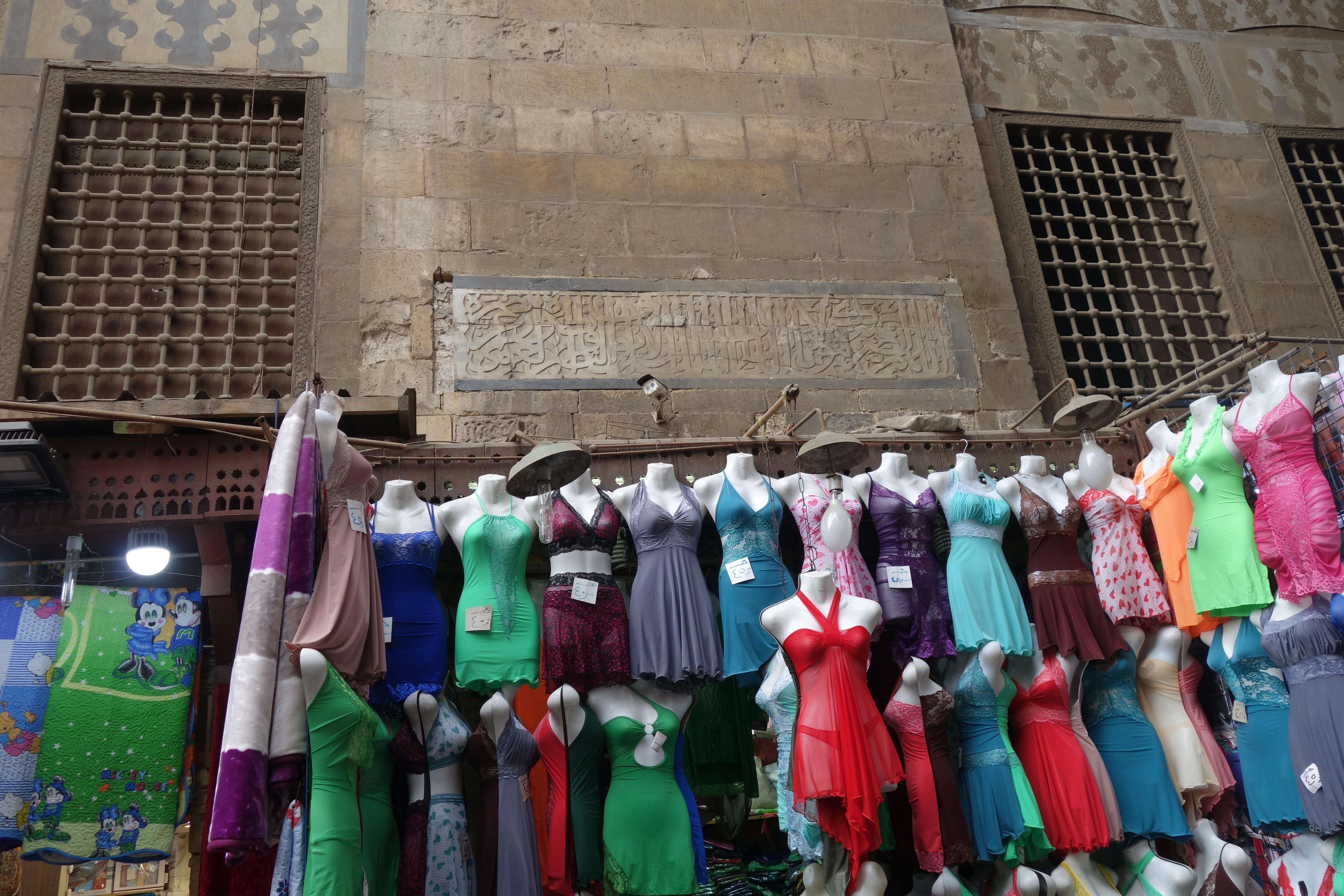 Imam takes us to the older parts of Cairo; the Ancient Citadel, built to defy the Crusaders; a bunch of mosques, (Didn’t we see this somewhere else? – Everywhere else.); the Coptic Quarter with a church built over the room where Joseph, Mary and Baby Jesus slept. Honest! Look, we have some Saints bones and a pillar that weeps blood, but not today; a synagogue or, is it another mosque, or a church? Well yes, it was once, all of the above. Make your mind up; an Orthodox church built over a Roman fort, it’s a mosque with pictures; and a Market. Phew! Time to breath. Not allowed! Hey frien! Buy my shit! No hassle! I’m intrigued by a stall selling naughty nighties, displayed on the outside of a 15th century mosque with Koranic verse carved into the masonry above split crotch panties.