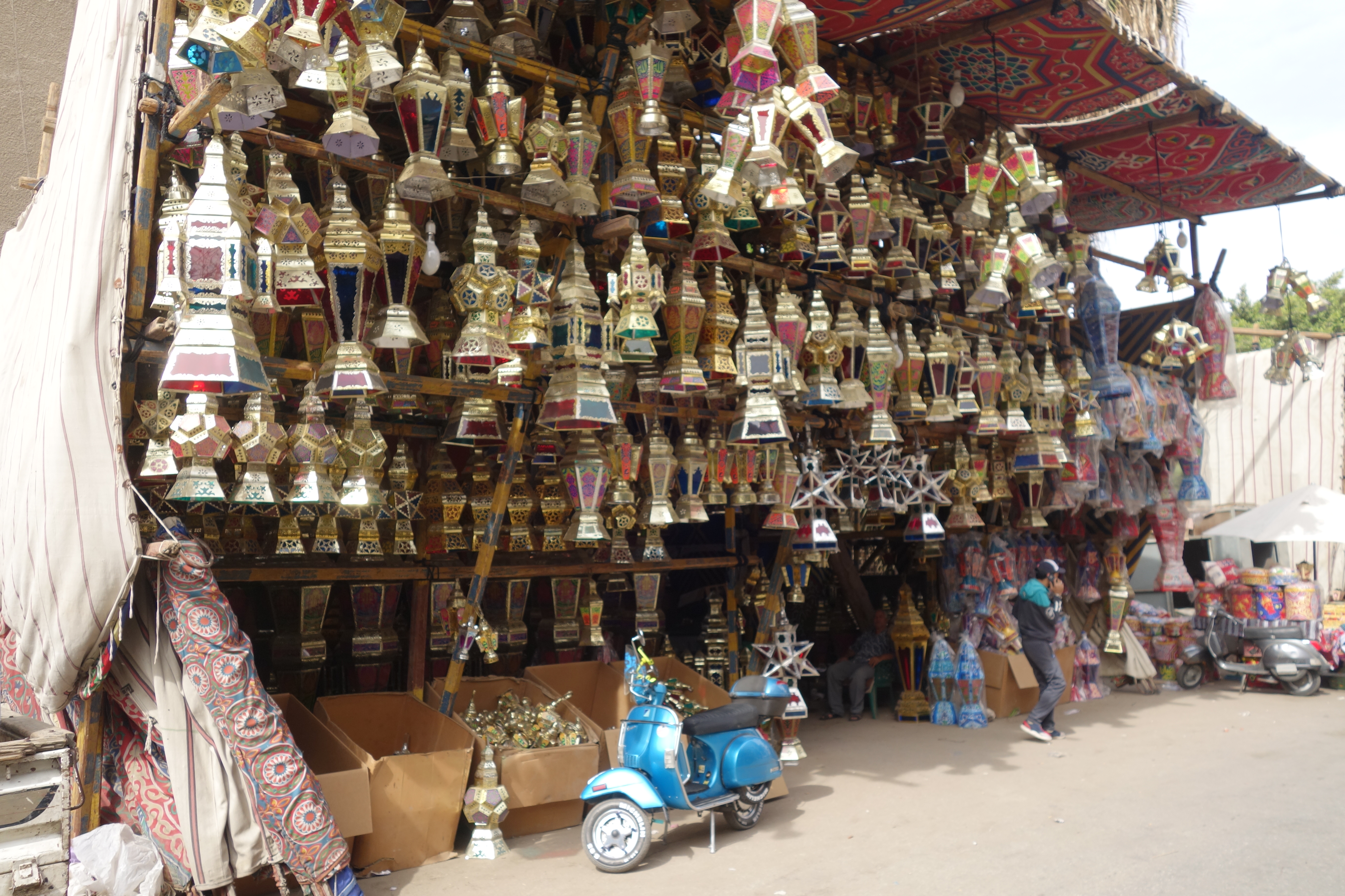 There are some beautiful buildings, thousands of people, donkey carts and scooters and men on bikes with enormous trays of bread balanced on their head. We do the Souk and the outskirts of the Souk and, if you ever need to buy the crescent moon for the top of your mosque, I know just where to get it my friend, no hassle but, could we find the two brass lamps like the ones we saw in the coffee shop in Abydos? Nope. If you see it and you like it, buy it. You might never see it again and a trip back to Abydos ain’t gonna happen.