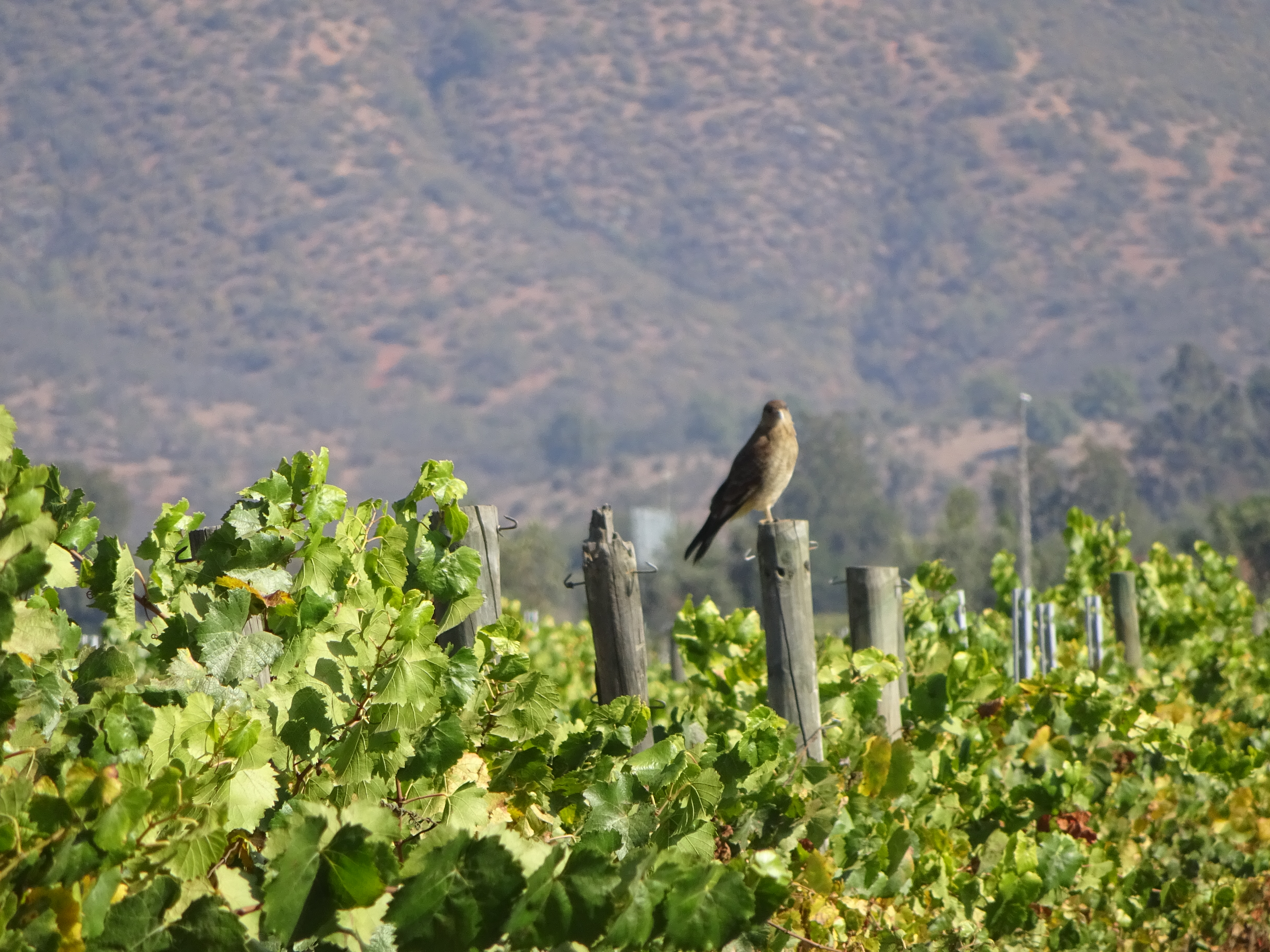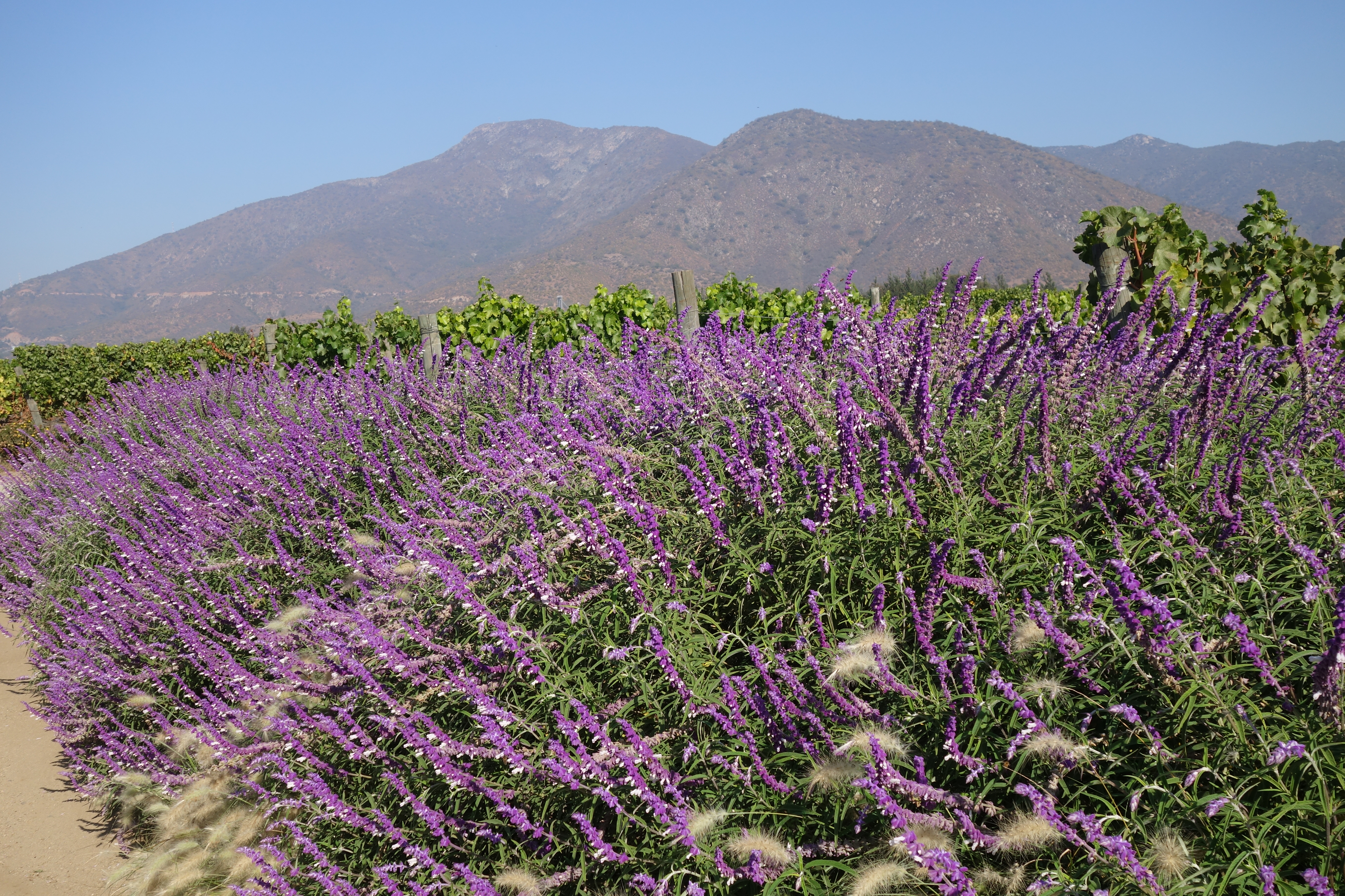We sprint back to the Hotel, Filippe loads us into the van and we drive through the rubbish strewn hinterland of Santiago, down several mountain ranges and into the Columbia Valley and the St Emiliana Vinyards. This is a seriously organic winery set in lovely gardens, Humming birds flit through the purple flowering sage, chickens and guinea fowl are responsible for insect control.
