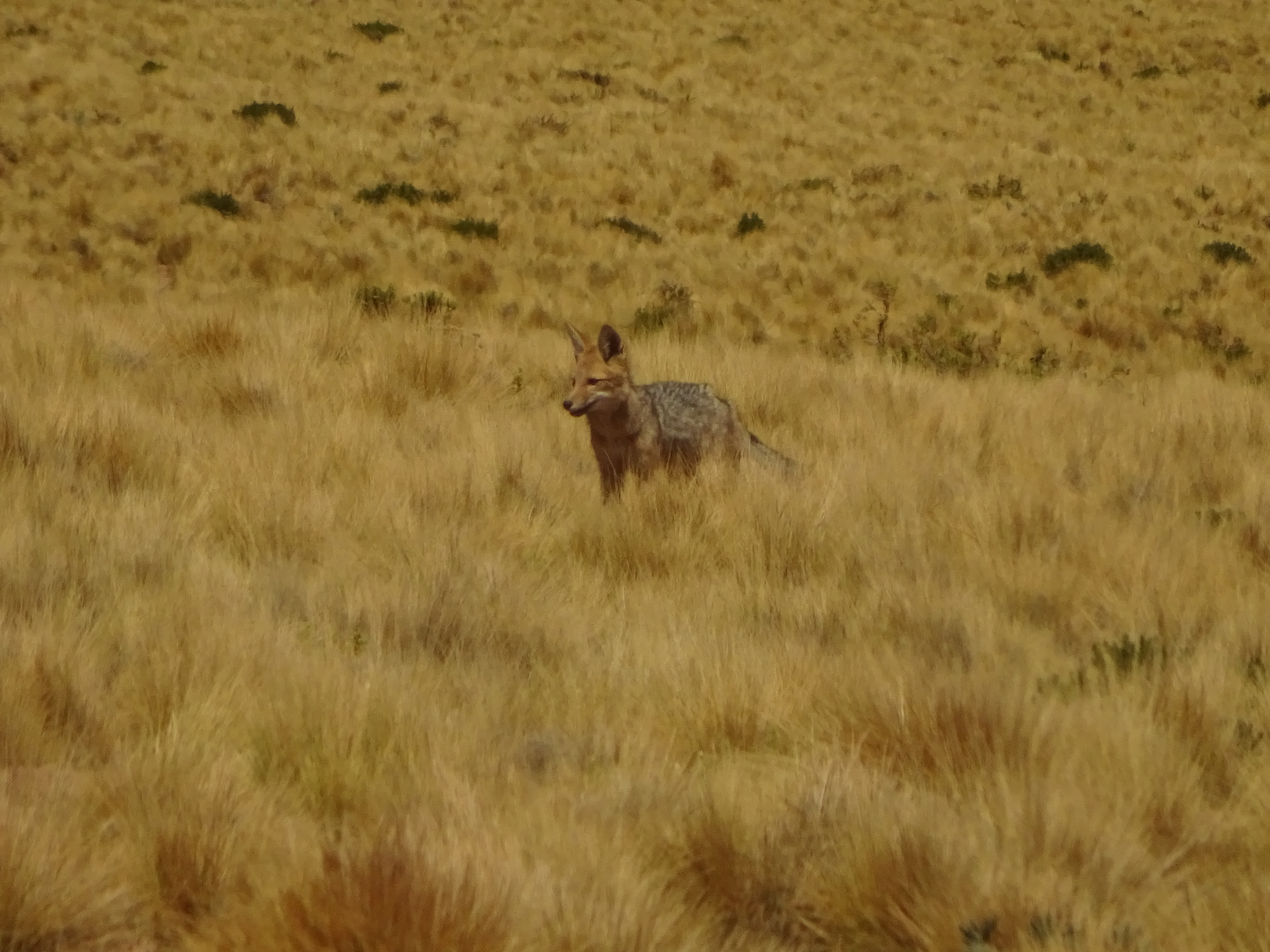 We drive on and leave our lunch order at another village, for village read; 8 sheds, 1 church and 3 abandoned fields. Pretty much standard for this part of Chile. We then drive on up to about 4,000m and stop for a stretch, a look and a quick search for some oxygen. As we step from the bus, there is a desert fox lurking through the scrub and a beautiful hawk with tawny and white markings circling against a pure blue sky. Not one of us is camera quick enough for the hawk but we manage to catch a few of Mr. Fox.