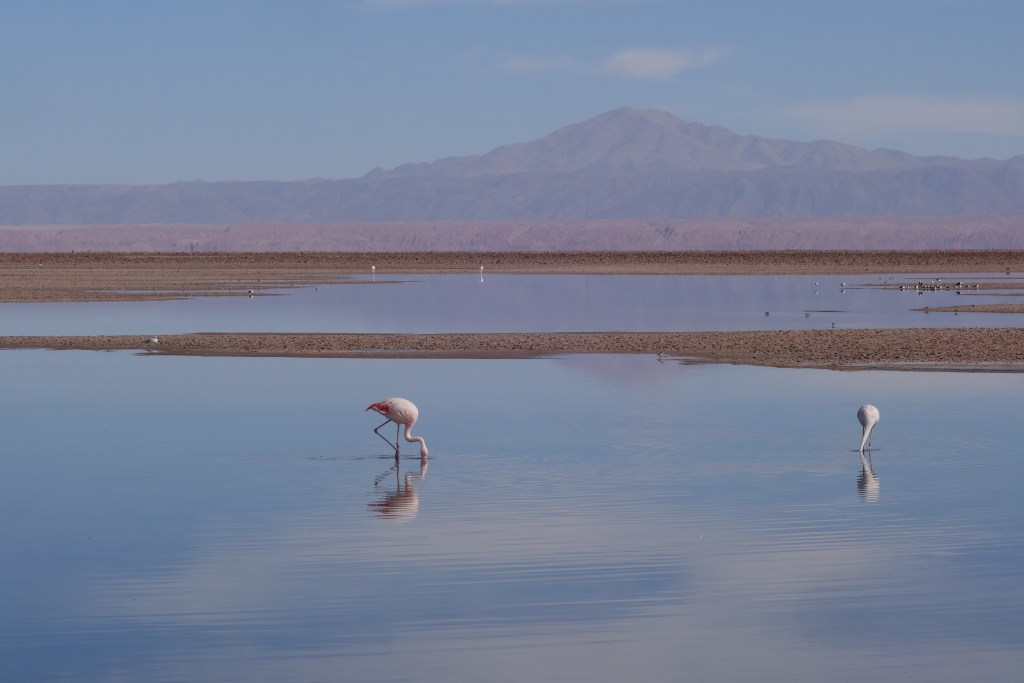 We stop at a village whose name I can’t be bothered to look up, it has a bell tower, nice, and a church, closed, its roof caved in during rains last February. Rain is not supposed to happen here. Go Donald, no such thing as Global Warming. We visit the salt Flats and the lagoons famous for the high-altitude pink flamingoes. Sorry…… that should read ‘flamingo’. No… I’m telling fibs. There were at least 6. We’ve got more in Kowloon Park. Anyway, the Lagoons are great, weird and wonderful, set in the lowest corner of a vast plain that was once the bottom of the Ocean. Now it’s ringed by volcanoes and mountains hunched up against the Pacific Ocean Plate and it’s 3,000 metres above sea level. Small pools contain billions of tiny salt water shimp, enough for 6 very fat flamingoes.
