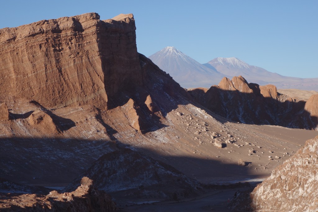 Then we go descend into the Valley of the Moon, which is a huge canyon of salt flats, cliffs, mud, sand dunes and more salt. Evidently there is so much salt here that Walker’s Crisps have taken out the mining rights. Due to the February rains, the whole area is blanketed in white, sparkling across the red mud. Some of the bigger crystals, trapped in the mud, are like huge glass prisms which, if you lick a bit, already taste like Walker’s Crisps, Chilean Mud flavor.
