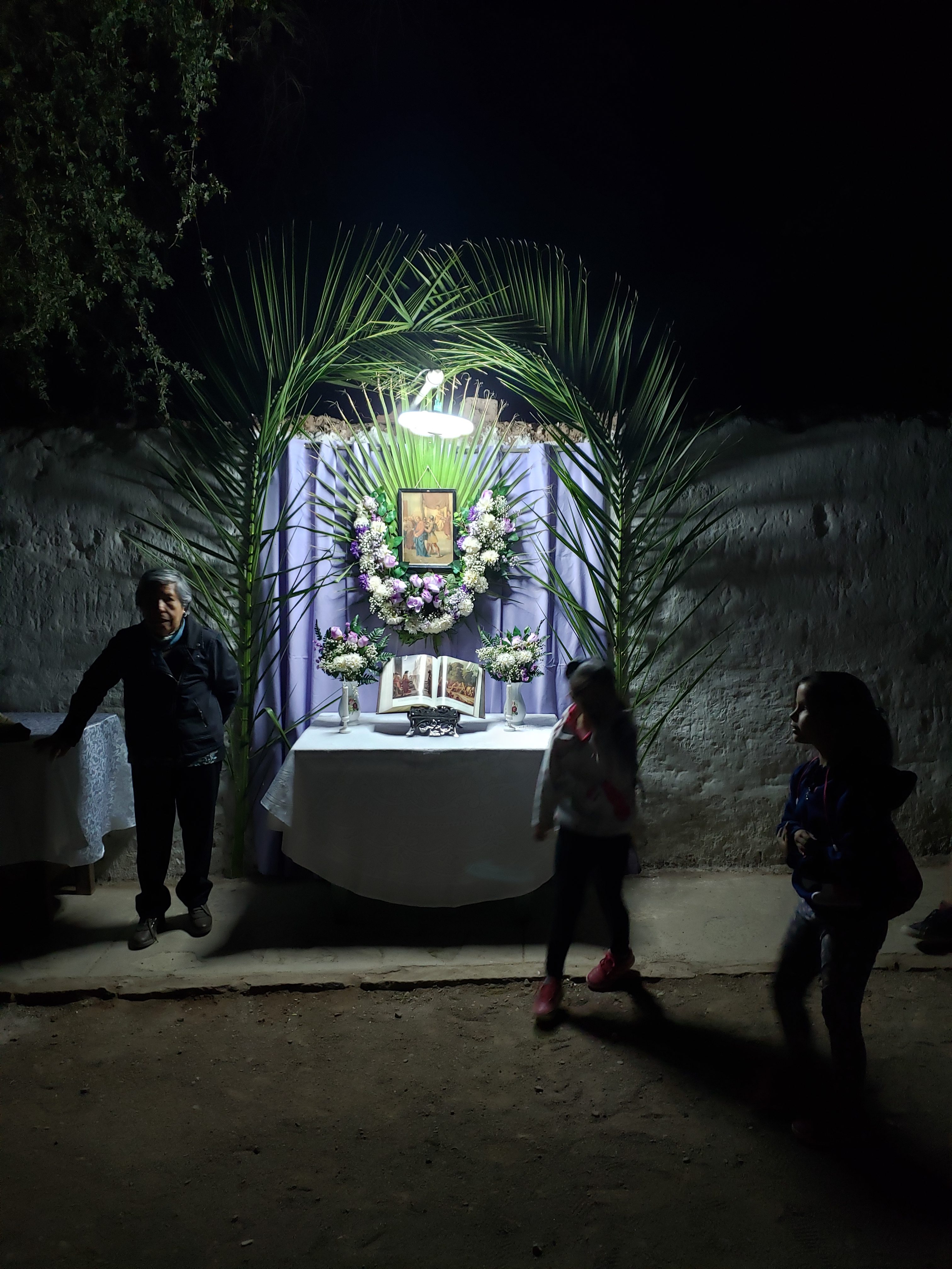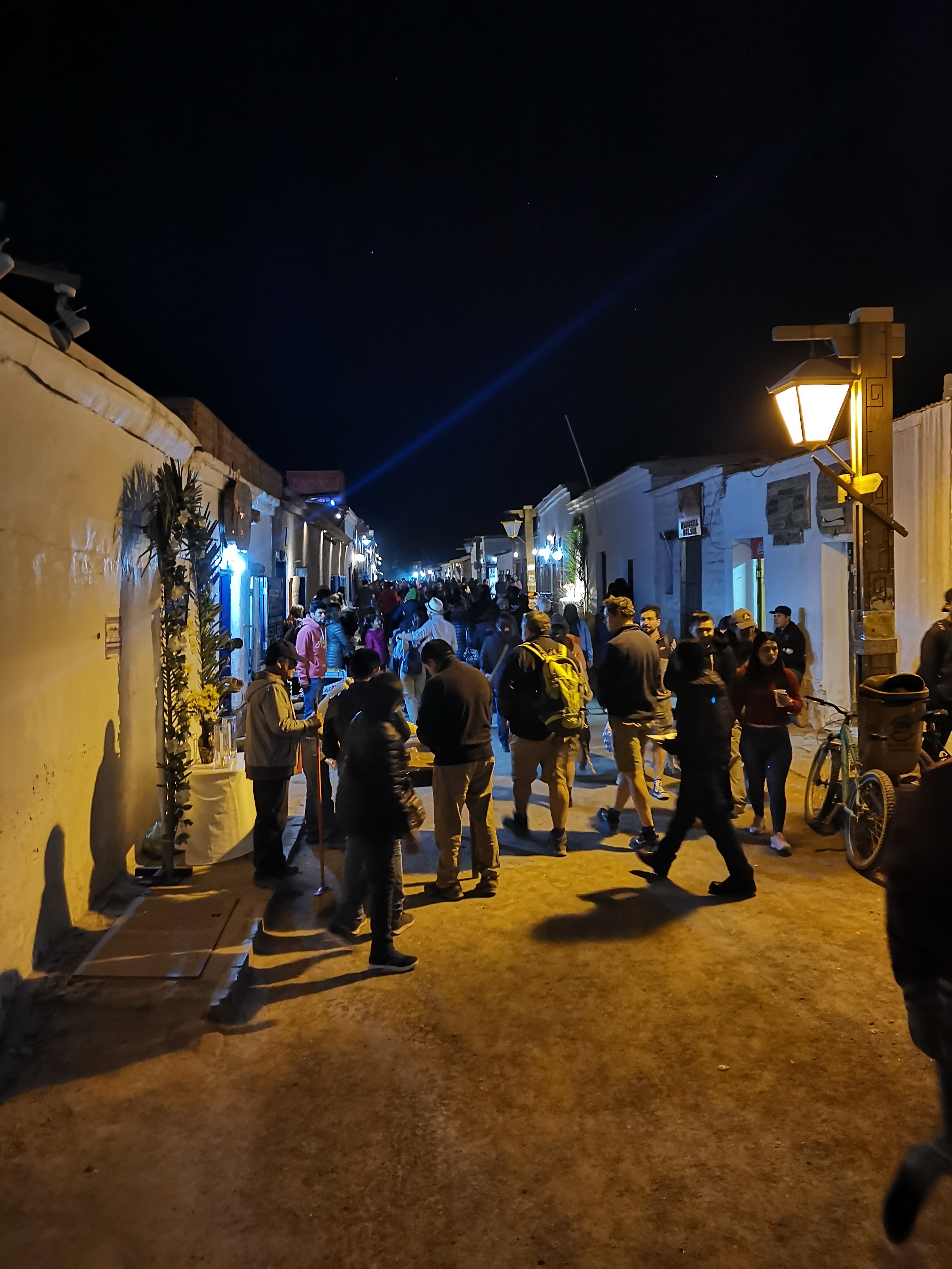 In the evening, we decide to walk into the town centre to see if we can find anything to eat. This seems a bit risky with our current run of luck, but St Pedro continues to surprise. The town centre consists of about four streets of small adobe buildings, the streets themselves are just rutted dirt, but they are packed with every form of humanity. All colours, all races, all classes. From tattooed backpackers to blue rinse and pearls. Each house is a shop, a bar, a café or a travel agent, or any combination thereof. There are no street lights, but light and music spills from every door. It’s like Tattooine in Star Wars.