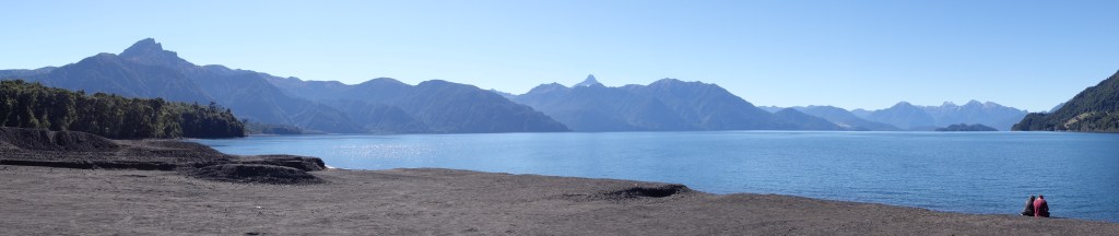 We climb to the upper lake and the end of the road, on the other shore the Andes poke up into the sky and, over their ridgeline is Argentina. Lunch starts with a Pisco Sour, followed by a bottle of red wine. Can it get any better? Well, a great slab of fresh, beautifully cooked, moist salmon says it can. I only hope he had a chance to spawn.