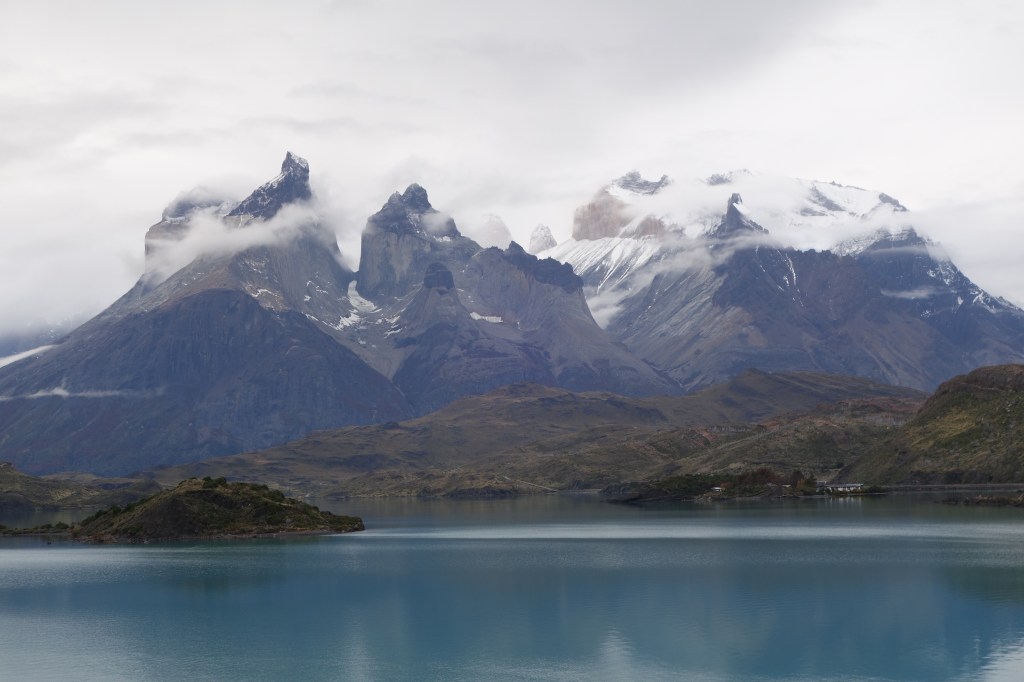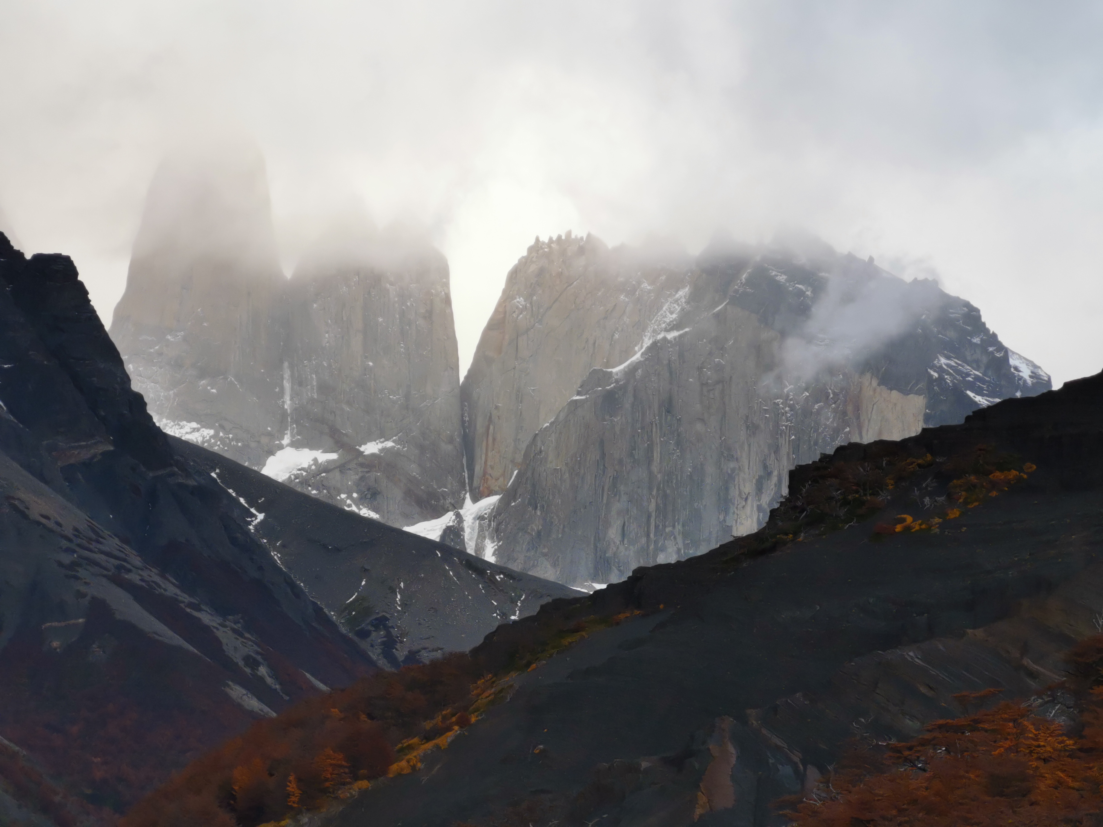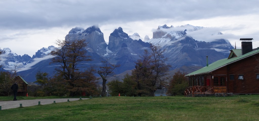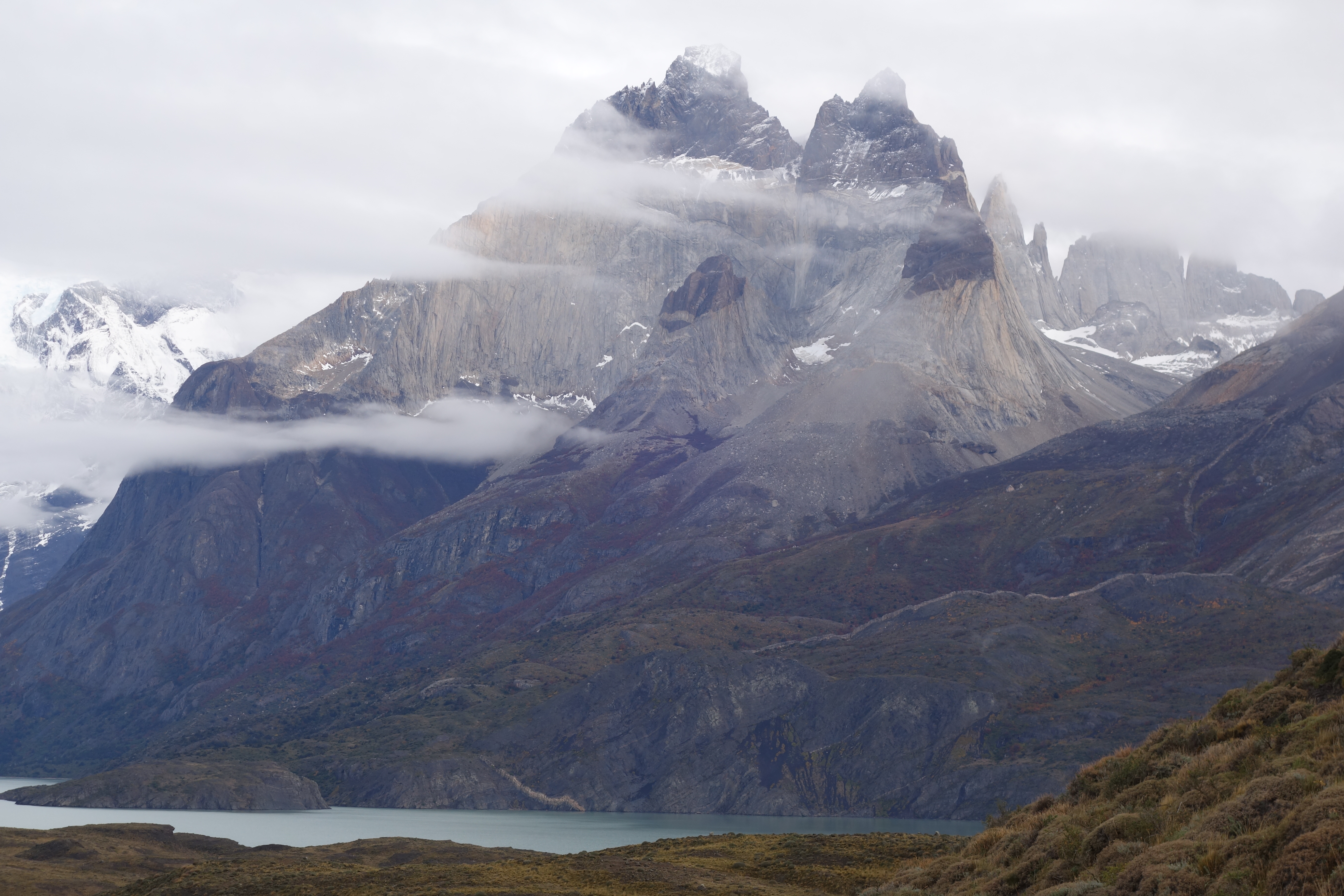 The van makes a couple of stops on the way back to the lodge and, at the last, there is a fantastic view over the lake to the Horns, gigantic grey granite columns that suddenly turn black at the tips. There are hanging glaciers and mist, clouds and shafts of sunlight piercing through.