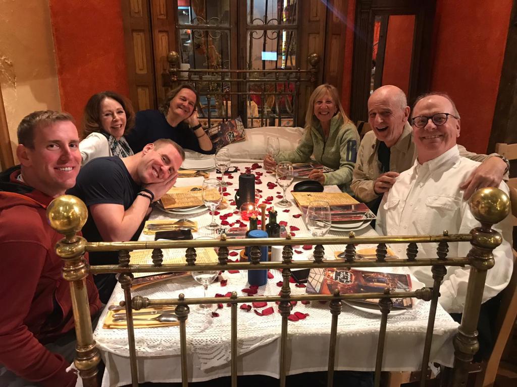 Before we know what has hit us, we are walking across town, with boom box accompaniment, to the Bella Vista Barrio, which is a bit new and a bit tacky but, just around the corner theTwins have lined up a really great restaurant. Table for seven? – “No problem, right here Signor.” It’s an elevated brass bed, complete with coverlet and pillows. A little gauche, but the food is terrific and the Carmenere excellent and we swap stories about what a bunch of arseholes Latam are. I try to teach them how to say ‘Arseholes’ properly, but it’s a losing battle. Americans got no class.