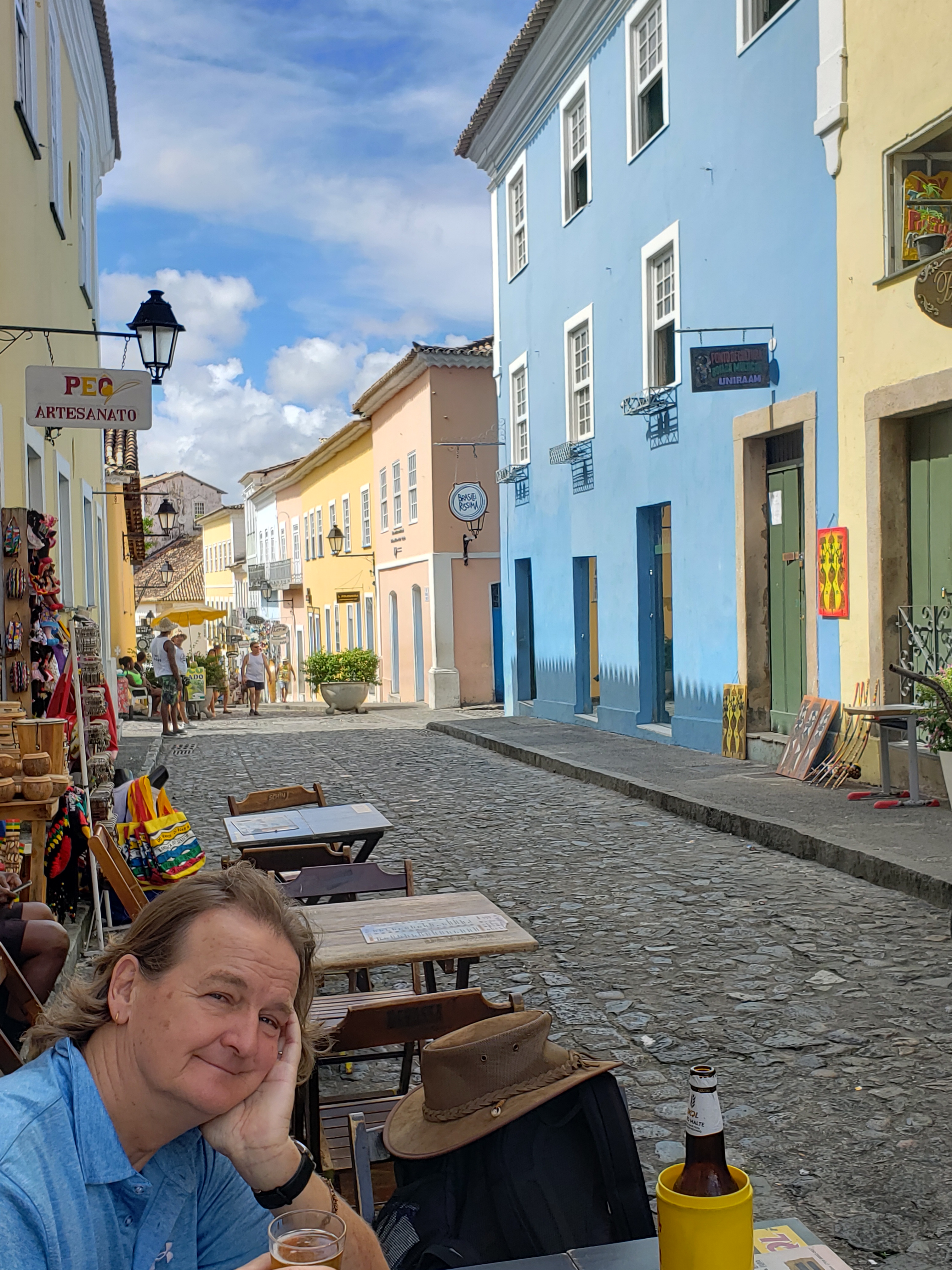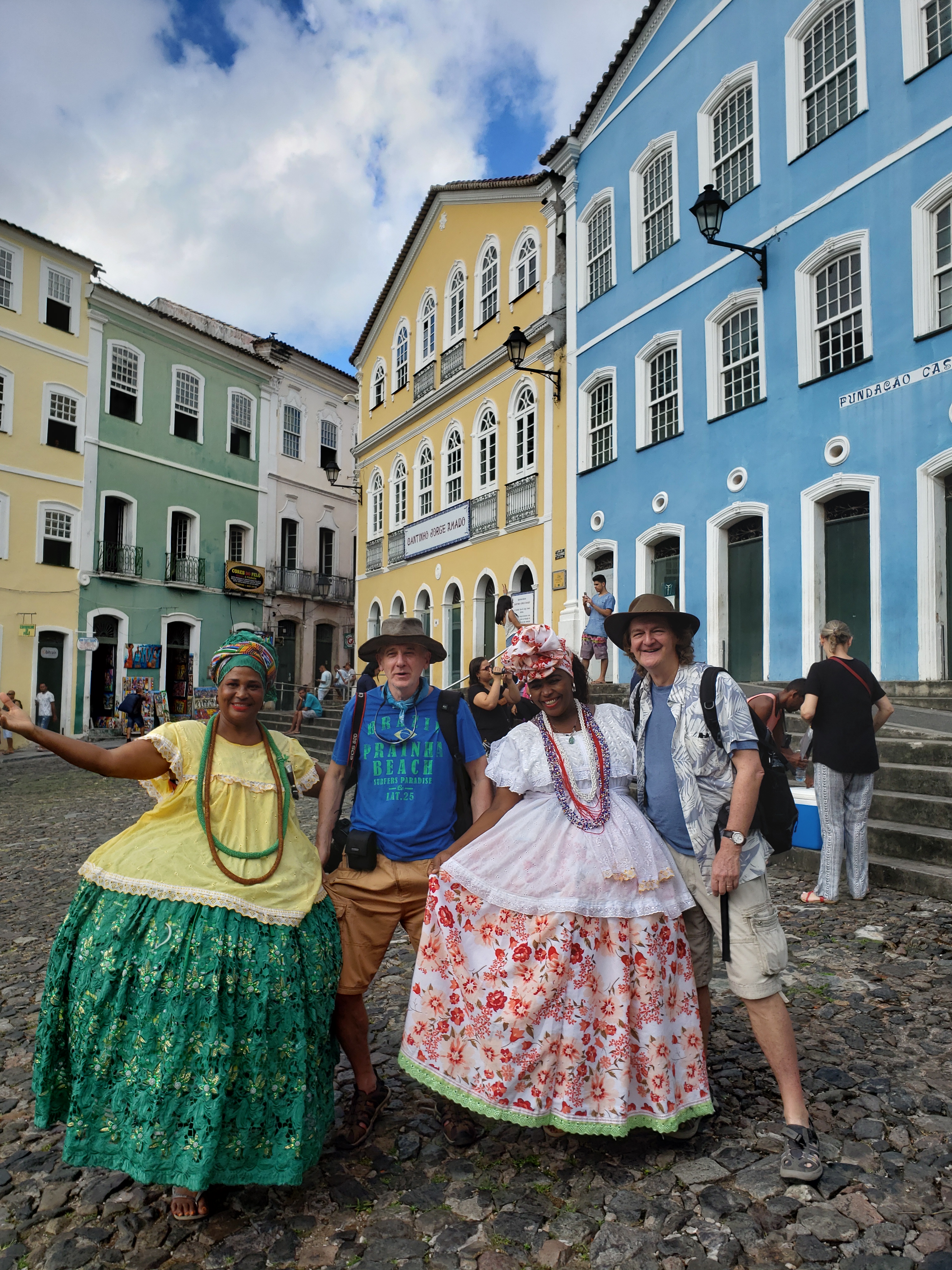 It’s time to get International and we fly to Sao Paulo, Brasil, then on to Salvador Bahia. Much to our surprise, Latam are able to do this without major obstacles, we arrive on time, with our bags and our driver is there to meet us. But it’s late and it’s dark and as he slows down to enter the old cobbled streets of Pelhorino (Don’t ask me why this place has so many names) the graffiti covered walls close in, the street sleepers raise a bleary eye and the ominous party drums kick in. Was this a good decision? It transpires that it was a great decision. The Casa do Amarelindo is a haven of peace, set in a maelstrom of crazy. We get into our rooms, the street sounds are mysteriously erased and a cold beer sees us into a beautiful bed.