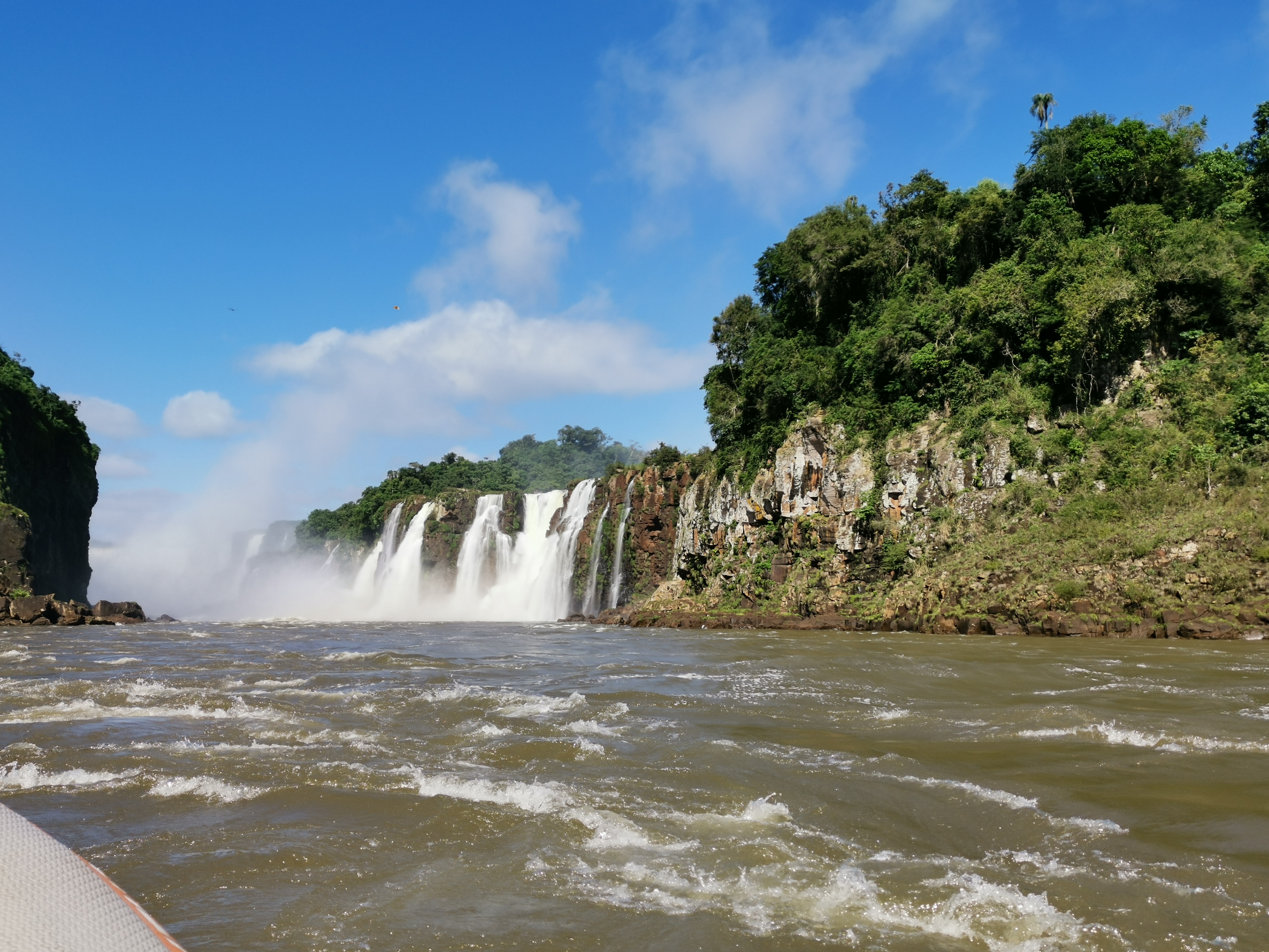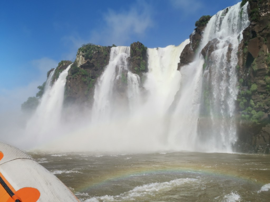 We have been told that there are two types of boatride, Wet and Dry, and frankly, ‘Dry’ is a bit of a misnomer. We stuff everything of value in a locker and, clad in Patagonian Sou’Westers with a disposable plastic poncho over and a lifejacket to top it all off, in the Brasilian sun, we are now on slow pot roast. The couple in front of us are in swimsuits only and I’m convinced that they made the right choice. Finally a group of Chilean Blue Rinsers put aside their zimmer frames and are hoisted into the back of the boat and I’m thinking, “Bummer, that means they will take it really steady so as not to frighten the old girls.” Silly of me really.