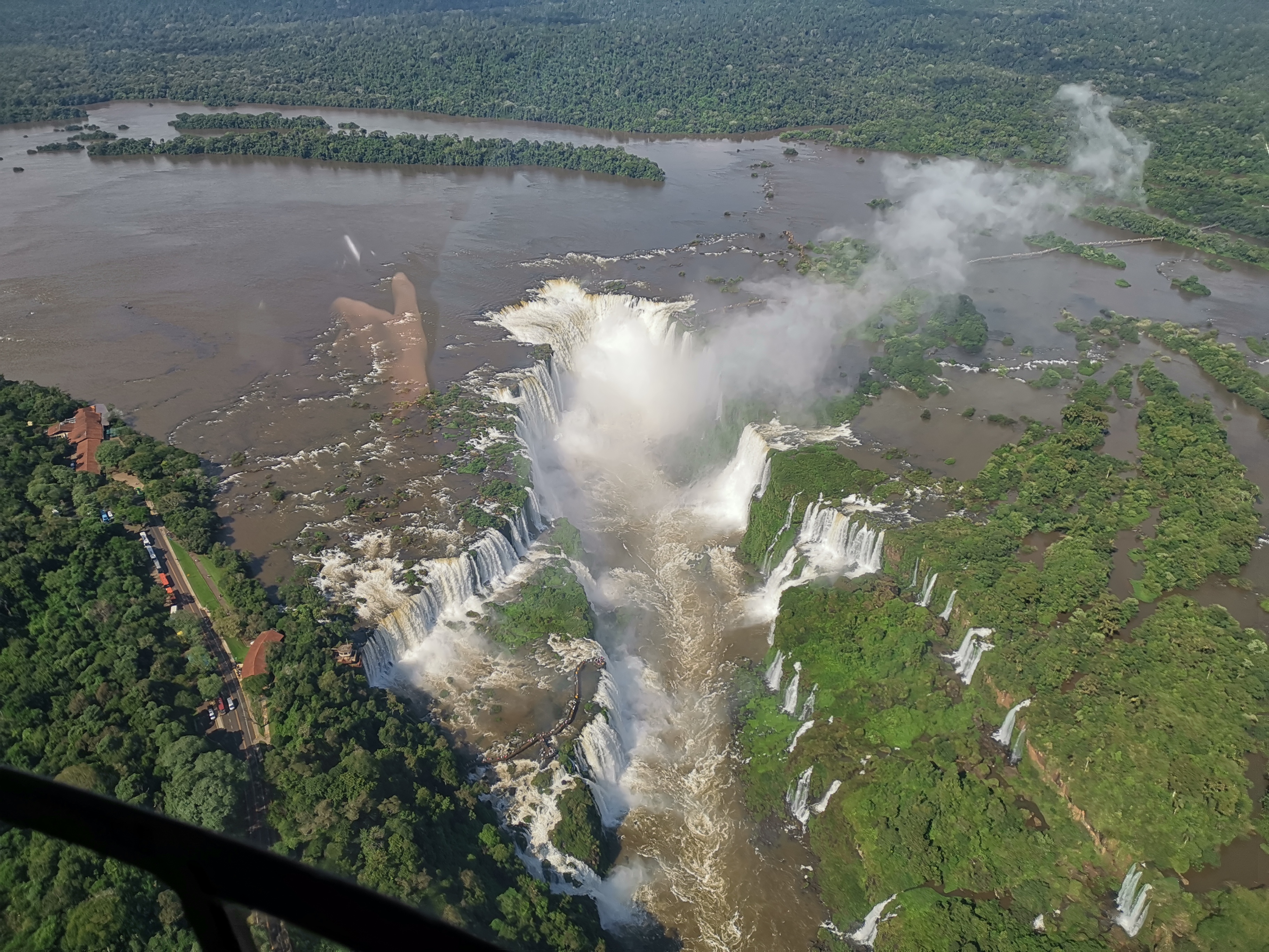 The jungle spreads out all around, but we can see encroaching fields of sugar cane and pasture. In the distance we can see the great snake of the river and the clouds rising over the falls. Then we are over them and the pilot banks and circles left and then right, it’s a wondrous sight and the only way to really grasp the overall scale. It’s only a 15 minute trip but Wow! What a ride. We get back to our rooms, shower, pack and fly to Rio.