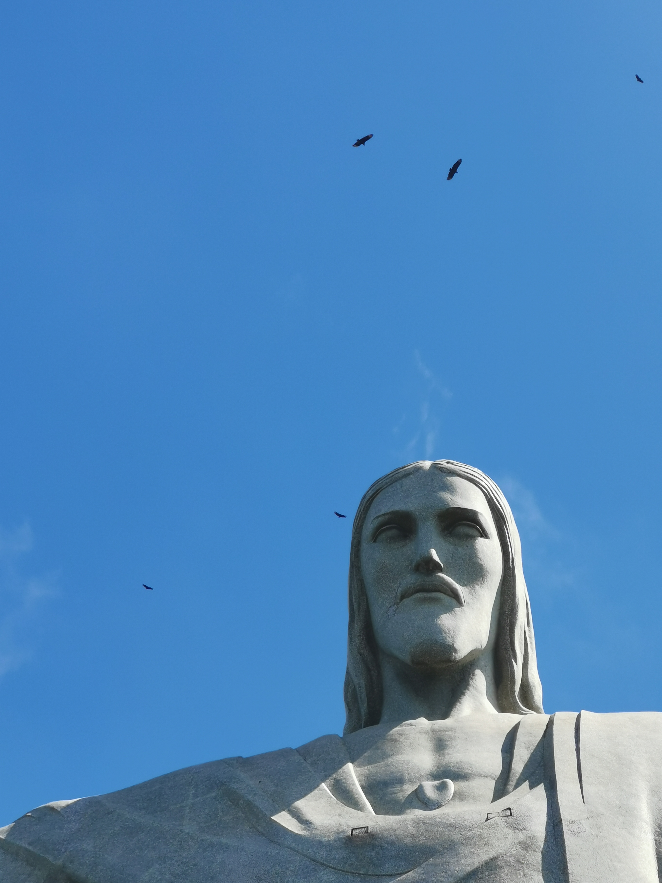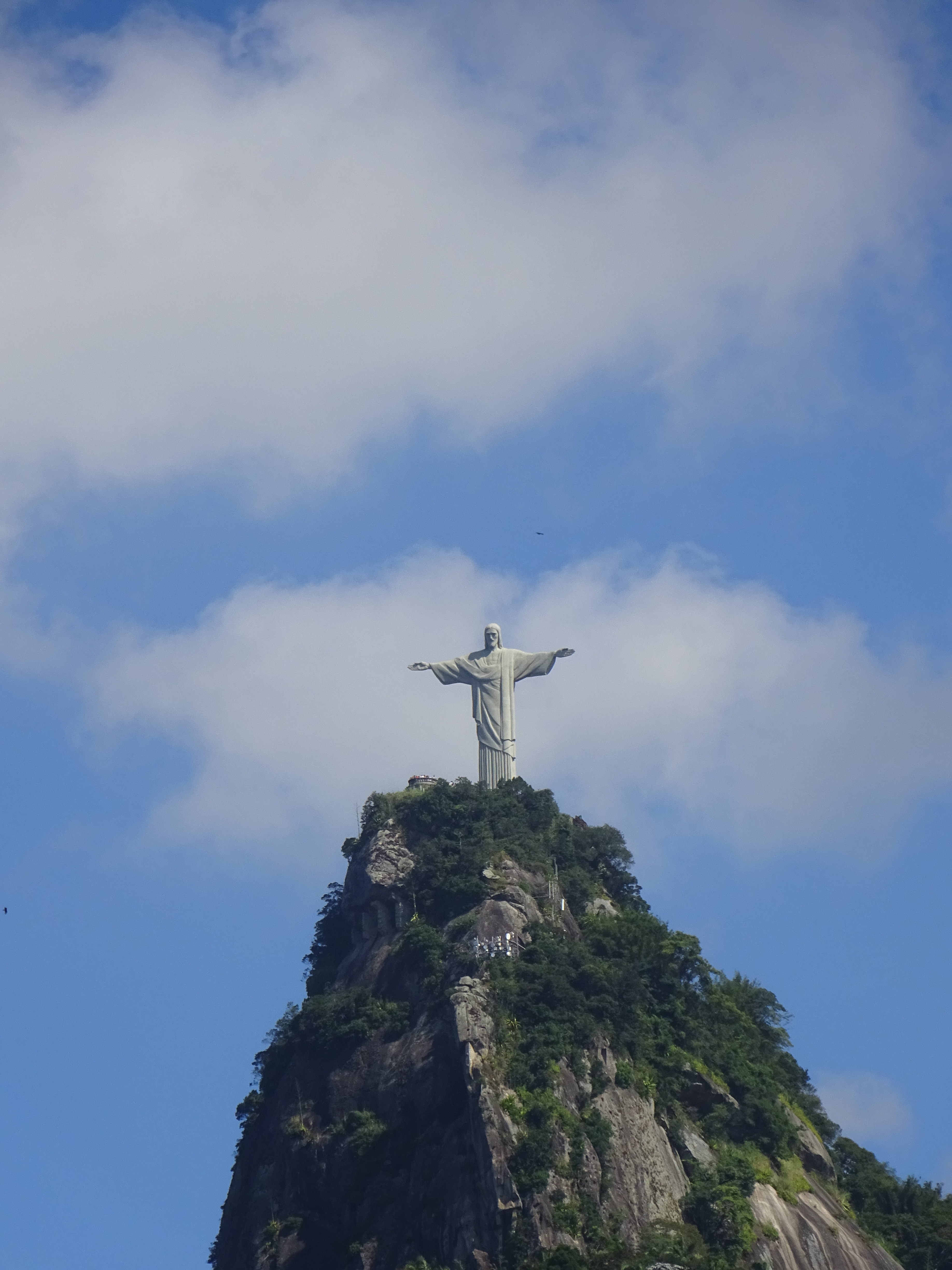 The sea is blue and so is the sky. The beach is, after all, pretty incredible, the Condos behind it less so, but the lush green mountains beyond them make it Rio. We drove up the mountain to Christ the Redeemer, stopping part way for stunning views over the City and watching the planes curve in over the town, over the bay and bank left in order to miss Sugarloaf, fingers crossed. We switch to the National Park bus to get near to the top and finally climb the steps to stand at Christ’s feet, along with several thousand others.
